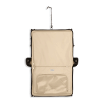 Garment bag hook to hang on a door included for easy access to contents.