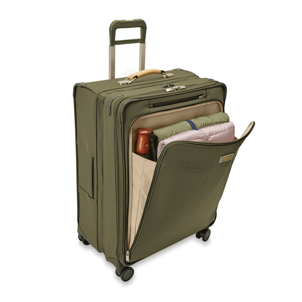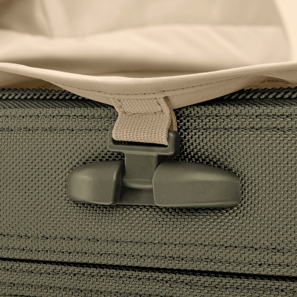 mounted on the suitcase exterior for a smooth, flat packing surface that reduces wrinkling.
