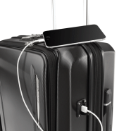 Special power hub includes a USB port and a pocket sized for wireless charging*. *Battery not included
