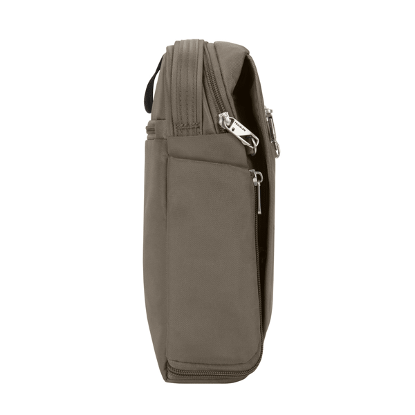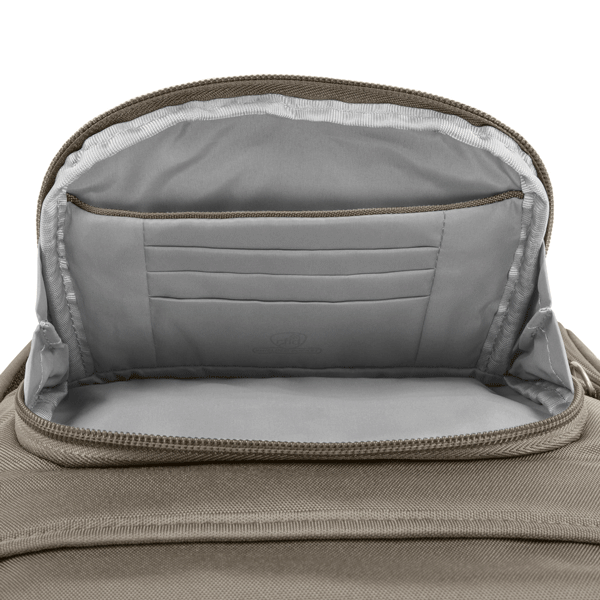 Main compartment has a padded tablet sleeve with flap closure for extra security
