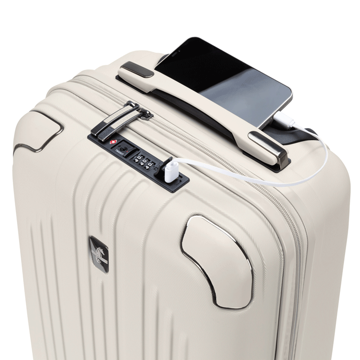 Eight 360-degree spinner wheels allow suitcase to move easily in all directions