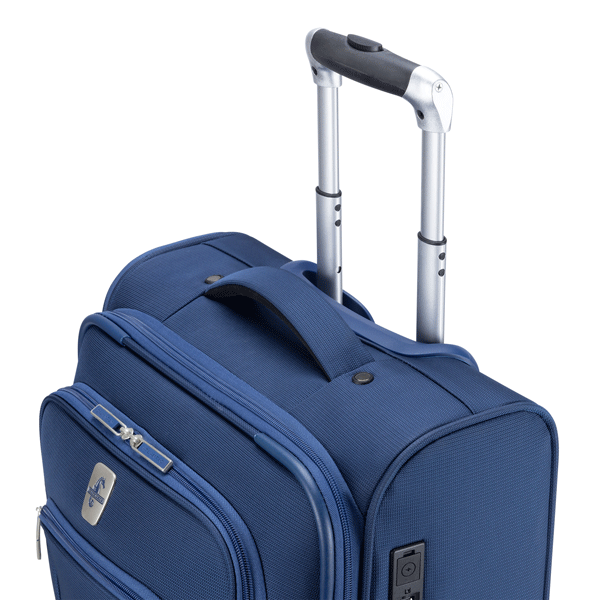 Bottom carry handle for easy lifting when storing in overhead bin or trunk of car