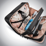Les sangles dans le compartiment arrière permettent de régler l’ouverture jusqu’à plat pour obtenir un accès facile.
