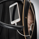 Le centre d’alimentation spécial comprend un port USB et une pochette d’une taille convenant à la recharge sans fil*. * Batterie non incluse