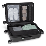 Huit roulettes pivotantes à 360 degrés permettent à la valise de se déplacer facilement dans toutes les directions