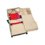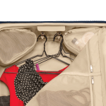 monté à l’extérieur de la valise pour une surface de rangement lisse et plate qui réduit le froissement.