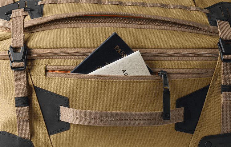 Accès extérieur à la poche humide/sèche qui contient une bouteille d’eau ou des articles mouillés