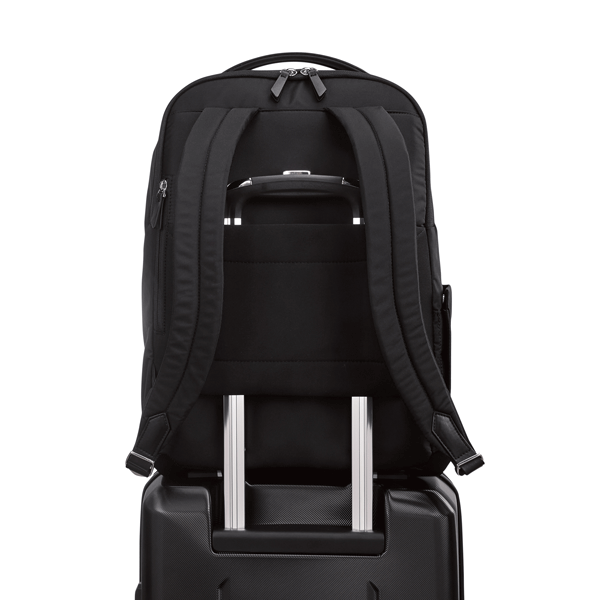 SmartSleeve vous permet de glisser le sac sur la plupart des poignées de tirage de valise, pour qu’il puisse reposer en