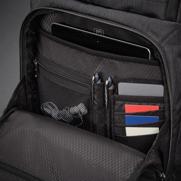 SmartSleeve vous permet de glisser le sac sur la plupart des poignées de tirage de valise, pour qu’il puisse
