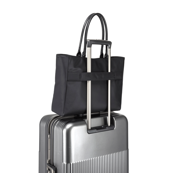SmartSleeve vous permet de glisser le sac sur la plupart des poignées de tirage de valise, pour qu’il puisse reposer en